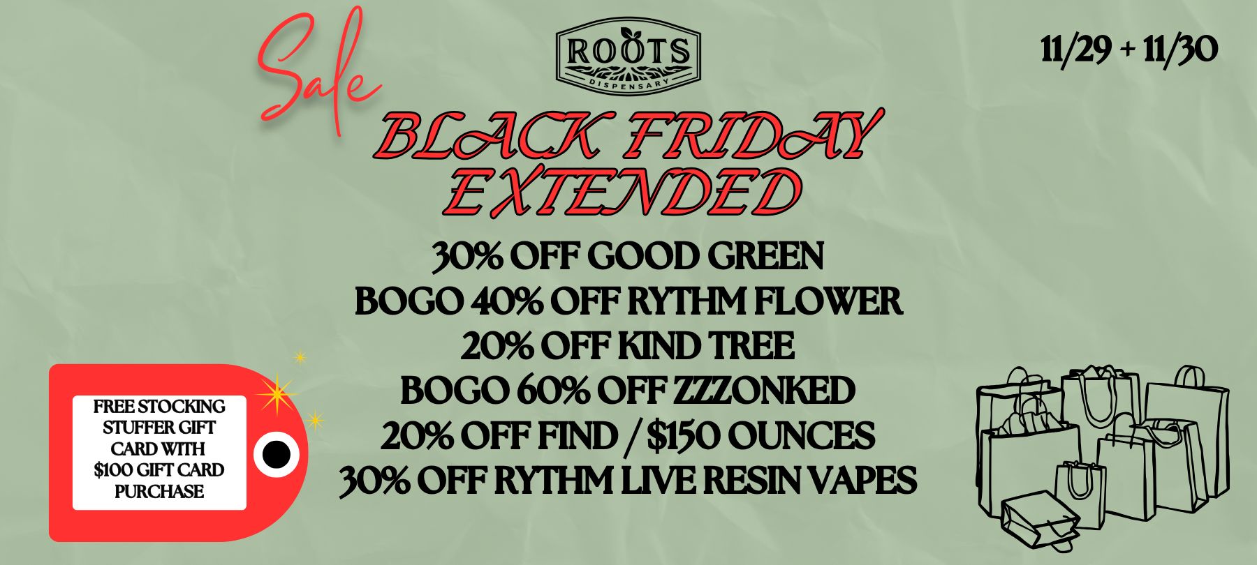 Along with an incredible array of cannabis options to suit every desired effect, experience level and personal preference, ROOTS Dispensary offers the assistance of a knowledgeable, approachable and friendly staff. We encourage questions and are delighted to share insight and recommendations. Let us make shopping for cannabis stress-free and satisfying. We accommodate hectic schedules, difficulties with mobility and the need for discretion with amenities such as free parking, online ordering, in-store pickup and curbside pickup. We even include the innovative convenience of our drive-thru!