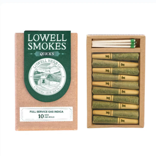 The classic Lowell Smokes pack has become a symbol for quality and craftsmanship for millions of consumers nationwide. We blend our pre-rolls using premium, whole flower- no trim or shake. Each blend contains a curated ratio of 2-3 strains containing complimentary terpenes. This process brings forth a broader terpene profile, and more full-bodied flavor than what a single genetic can provide. Each pre-roll pack comes completely self-contained with 10 .3g pre rolls, matches, and a striker- so you've got everything you need to spark adventure anywhere. Full Service Gas is a powerful and relaxing Indica named after a NJ staple.
