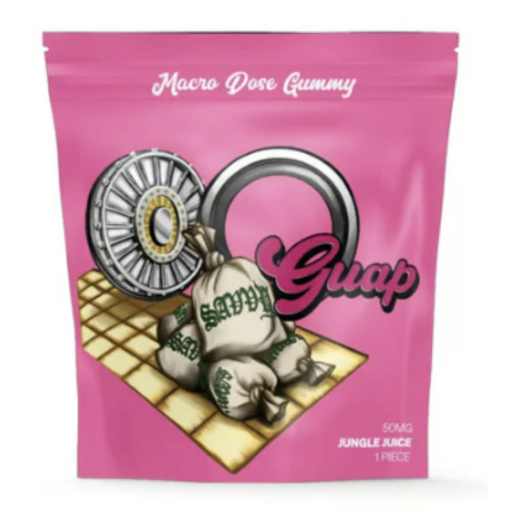 Short stacks, high dose. Savvy Guap gummies are money, loaded with 50 mg THC in one big-bite-sized piece for a high you’ll crave. Taste the green in Jungle Juice, a not-your-mother's fruit punch flavor.