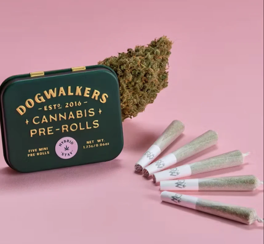 Dogwalkers “STAY” Mini Dog pre-rolls offer a total of 1.75g hybrid flower. Conveniently packaged in an on-the-go tin, each .35g miniature pre-roll (five total) is always crafted with strain-specific premium flower; never shake, stems or seeds. Dogwalkers donates a portion of proceeds from every product sold to deserving animal shelters across the country.