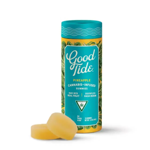 Feel the sand between your toes as you bite into a Good Tide pineapple gummy. Infused with the properties of sativa-dominant strains, these pineapple gummies produce an uplifting experience that begins with true tropical fruit flavor. The naturally occurring terpenes and minor cannabinoids present in our solventless hash rosin complement the real-fruit pineapple ingredients to form a perfect pairing.