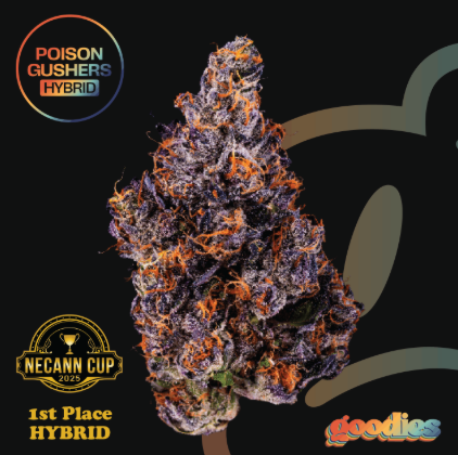 Poison Gushers from Niche is an indica-leaning hybrid known for a potent but still functional high and a candy-like, dessert-style profile. It blends a relaxing body experience with a bright, euphoric head effect, making it popular for evenings when consumers want to unwind without becoming fully sedated.