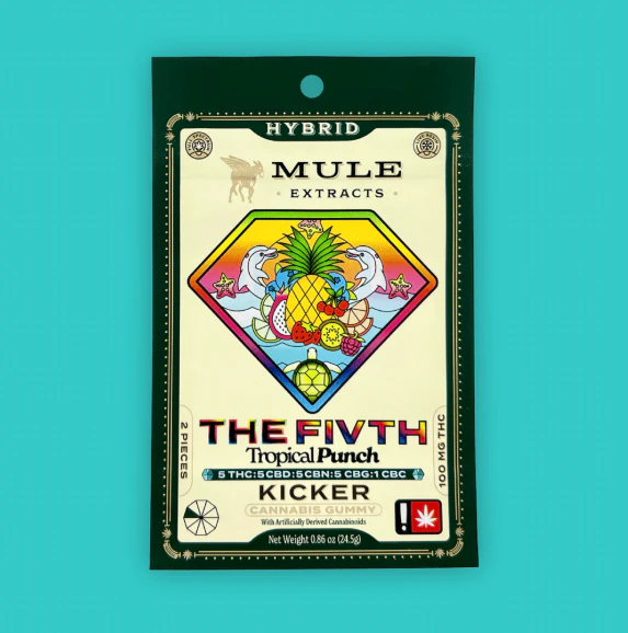 Taking our Qu4d series to the next level, The FiVth combines the powers of THC, CBD, CBG, and CBN but now includes CBC – a cannabinoid known to enhance euphoric effects. Comes as two Kickers; 100mg THC per package.