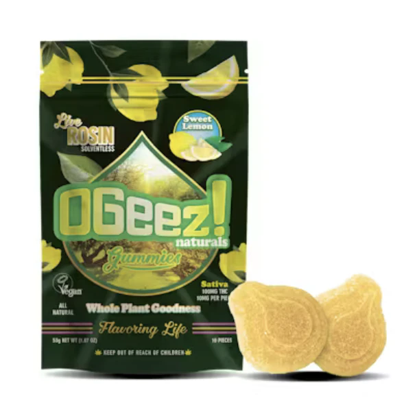 OGeez! | Naturals | Sweet Lemon Live Rosin Gummies | 10pk/100mg