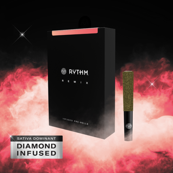 This vibrant sativa-dominant strain overflows with a juicy-as-it-gets flavor profile of sweet, creamy mango. Remix pre-rolls feature RYTHM premium indoor flower double infused with THCa diamonds and kief for maximum potency and fine-tuned with 100% natural terpenes.