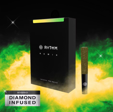 Bright and tropical yet earthy, this aromatic, invigorating hybrid strikes the perfect balance of flavor and feeling. Remix pre-rolls feature RYTHM premium indoor flower double infused with THCa diamonds and kief for maximum potency and fine-tuned with 100% natural terpenes.