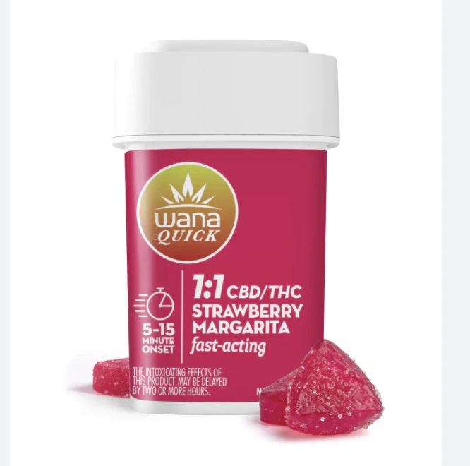 The THC in Wana Quick Gummies bypasses first pass metabolism in the liver, resulting in a 5-15 minute onset time, a 2-4 hour duration, and a cerebral "smoker's high" unlike anything you'll experience with traditional edibles. 100MG THC / 5MG CBD PER PACKAGE 5MG THC / 5MG CBD PER PIECE Sweet and citrusy (with a hint of salt), these fast-acting gummies are infused with a balanced ratio of CBD and a proprietary hybrid THC blend containing more than 30 terpenes.