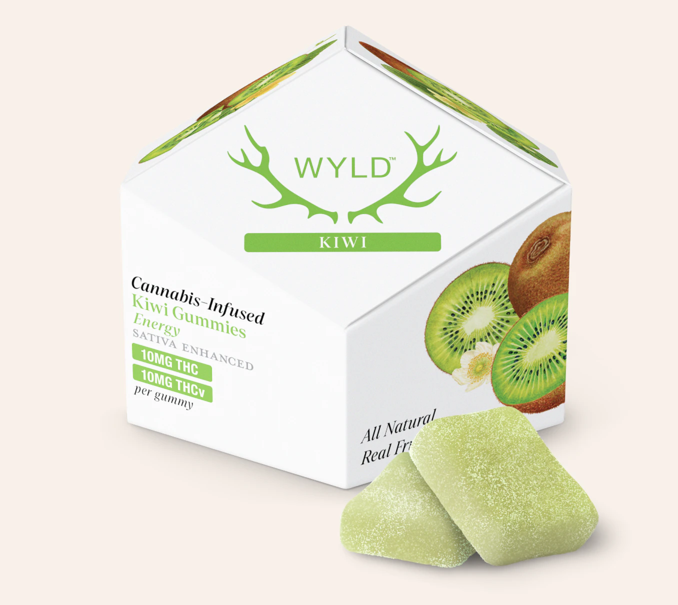 Our Kiwi gummies are tailor-made with real fruit and THCv to unlock your next level. With a 1 to 1 blend of THC and THCv, these uplifting gummies open up a Sativa experience that brings a boost of energy and focus to the typical THC high. Feeling Fuzzy? Time for Wyld’s Kiwi gummies.